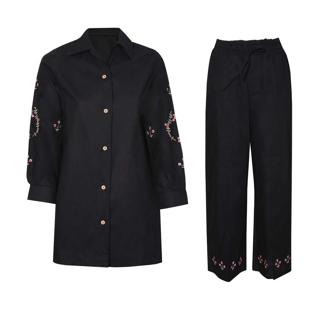 ست تونیک و شلوار زنانه مدل بهارک رنگ مشکی